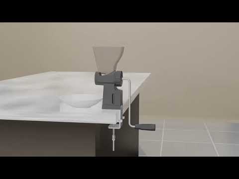 The Grain Mill is small, compact, and light – yet strong. Weighing in at under 3 lbs, we have not found a lighter grain mill on the market. The Grain Mill comes with a hand crank but also offers an optional electric drive motor (VKPMOTOR sold separately). Now you can have a single flour mill that works great with or without electricity on large and small grains like wheat and beans. It is the perfect compliment to any baker's kitchen. Making fresh flour from beans, corn, wheat, oats or rice has never been more convenient. The stainless steel burrs efficiently grind any non-oily grain or seed. The Grain Mill offers even more versatility by allowing you to grind from coarse, cracked cereal texture to fine bread quality flour. The large capacity hopper holds up to 2 cups of grain. The wide clamp base securely clamps to counters up to 2" thick. When using the hand crank, The Grain Mill twists slightly; absorbing the shock to the clamp base. This keeps the mill clamp more secure. The Grain Mill is great for emergencies and small batch baking – you will enjoy it for years to come!