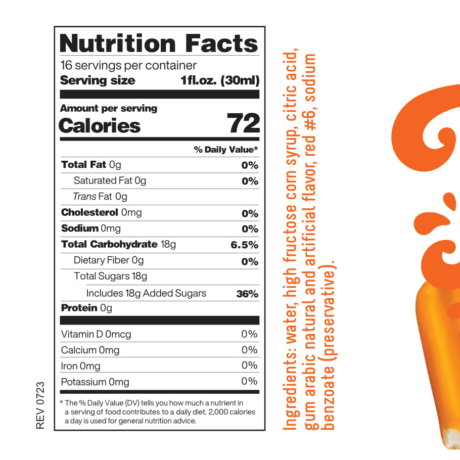 This is a premium shaved ice syrup that can be used for snow cones, slushes, ice pops, shakes, smoothies, homemade sodas and more. Comes with a squeeze top for easy pouring. The syrup will keep for several years unopened, as long as it is stored away from sunlight and temperatures above 80°F.