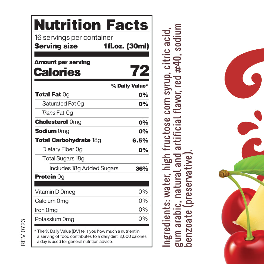 - high fructose corn sweetener, water, citric acid, gum acacia, natural and artificial flavor, red #40, sodium benzoate (preservative), blue #1.